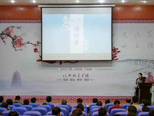 本次活动按照“河南城建学院道德讲堂”建设工作的要求开展,分为“省自身、唱歌曲、学模范、诵经典、发善心、送吉祥”等六个环节。