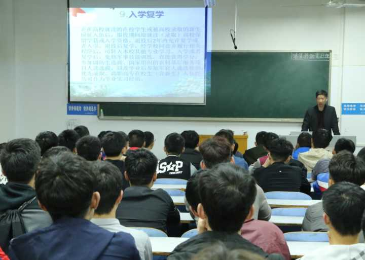 在本次宣讲会议上,王艳杰老师首先向全体参会同学播放了中国空军、中国海军、中国武警、火箭军等多兵种的宣讲视频。随后就所有人最为关心的征兵就学,就业和经济补助等方面政策进行了详细的解释说明,随后又向学生们介绍了2018征兵工作的预征对象、身体条件等情况。接着又对之前学生提出的有关学费减免、落户要求、复学助学等相关问题作出了回答,宣讲气氛十分热烈。最后,他阐述了大学生入伍对于自身塑造和锻炼成才的重要意义并希望各年级符合条件有意参军报国的同学积极报名。会议结束后,参与学生群体之间讨论热烈,对于参军入伍均表达出跃跃欲试的积极意愿。