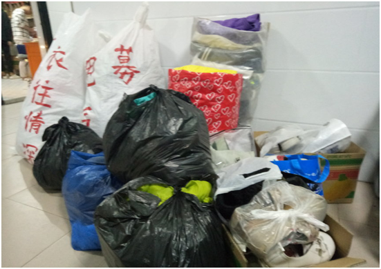 (图为募捐到的所有衣物)