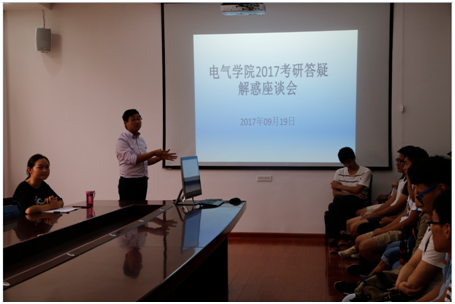 本次考研答疑解惑座谈会上各个学子踊跃发言,气氛热烈。经过本次座谈会,相信本届学子会有一个更平和的心态,更坚定的决心,更优异的成绩,再创电气考研记录新高。
