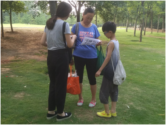 (图为科普宣传志愿者为孩子以及家长讲解防溺水知识)