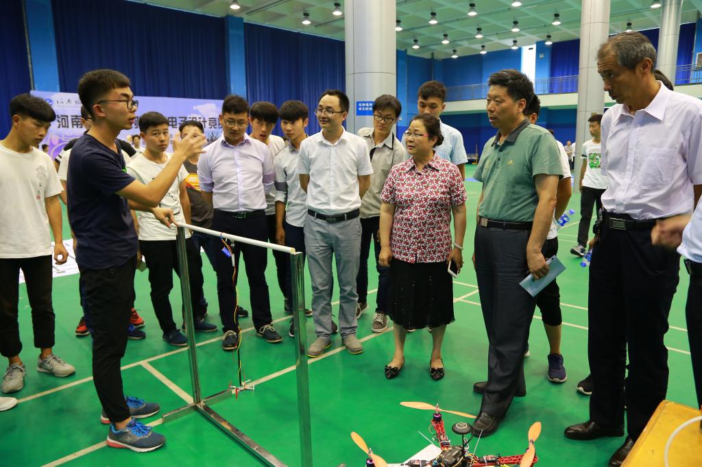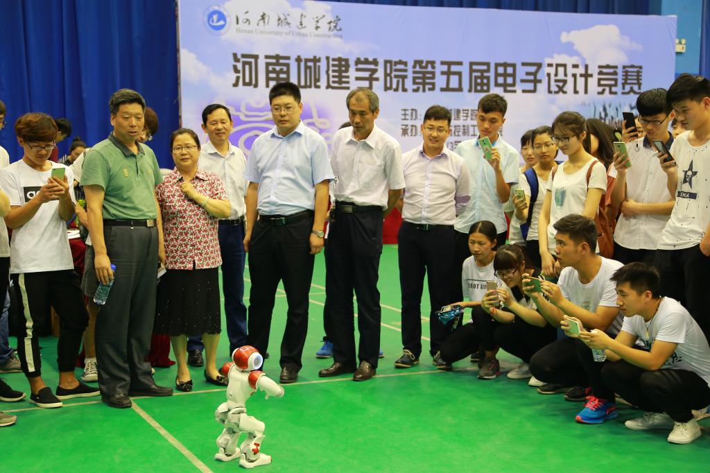 (通讯员 贺伟)5月27日,由我校教务处主办,电气与控制工程学院和上海V3学院承办的河南城建学院第五届电子设竞赛颁奖仪式在体育馆胜利召开。本次大赛于5月4日开赛,5月22日-5月23日进行评比,历时20天,报名人数近200人次。河南城建学院副校长赵金安教授、上海V3学院市场总监王建飞先生、教务处副处长霍松涛、电气学院班子成员参加了颁奖仪式,在颁奖仪式中赵金安副校长致辞并颁发了一等奖。赵金安指出,大学生电子设计竞赛是教育部和工业和信息化部共同发起的大学生学科竞赛之一,目的在于考核参赛学生综合应用基础知识的能力、实践创新能力和团队协作能力,全面考核了“教、学、技、用”等多个方面,是对“工匠精神”的具体体现。希望通过此次竞赛,鼓励广大学生踊跃参加课外科技活动,让更多的老师和学生参与进来,把学科竞赛渗透到创新创业教育、课程体系改革和教学模式改革中,促进人才培养质量的提高。