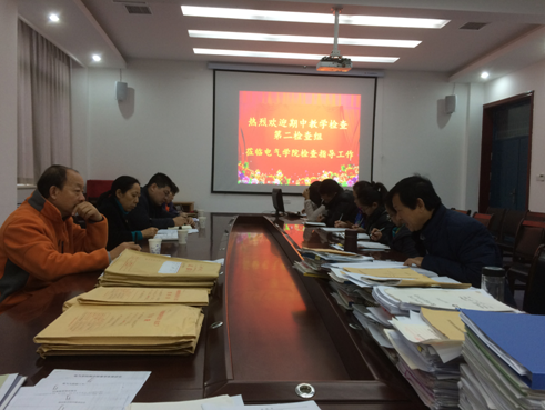 在听取了电气学院工作汇报后,检查组成员针对电气学院的基层教学组织建设情况、人才培养模式改革及课堂教学改革开展情况、教学监控情况、2015-2016学年的考试试卷、2016届毕业论文等逐一的进行了专项检查。最后刘钦组长代表第二检查组对此次检查工作进行总结报告:第一、肯定了电气学院在学习《河南省教育厅关于引导部分本科高校向应用型转变的实施意见》、《关于印发訾新建副厅长在全省普通高校教学工作座谈会暨2016年高等教育教学成果奖评审会议上的讲话的通知》以及《关于进一步加强高等学校基层教学组织建设提高教学水平的指导意见》等文件较为充分,落实情况较好。第二、肯定了电气学院“建“双师双能”队伍,筑“产教学研”平台,“工学结合”道路,育“应用技术”人才”的工作思路。该项工作思路及理念在目前高校转型发展以及应用技术型人才培养方面具有较高的现实指导意义,积极响应了我校在“深化改革创新、加快转型提升,为建设特色鲜明的高水平应用技术型城建大学”的奋斗目标。第三,在人才培养模式的改革与课堂教学的改革方面,对电气学院提出的“三结合”、“五融合”改革方案给予了高度肯定,强调人才培养模式改革要紧密结合行业发展的需求、结合市场与地方的需要、结合国家大政方针;教学改革方面:科研项目要与教学内容融合、工程项目与教学内容融合、学科竞赛与教学内容融合、技术服务与教学内容融合、科技创新与教学内容融合。最后,希望电气学院继续深化改革,进一步完善基层教学组织建设,提高本科教学质量。