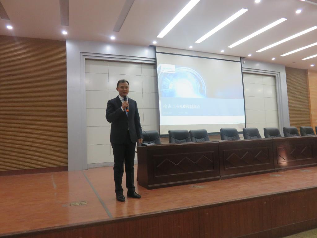 (通讯员:葛广军)12月30日,电气与信息工程学院在行政楼学术报告厅举办了“工业4.0、智能控制与创新创业人才需求”学术讲座。本次讲座邀请到西门子(中国)有限公司河南区业务总监丁宁、西门子(中国)有限公司高校管理事业部业务总监元娜等一行六人,丁宁担任主讲人,五百余名师生参加了本次学术报告,讲座由电气学院院长樊晓虹主持。