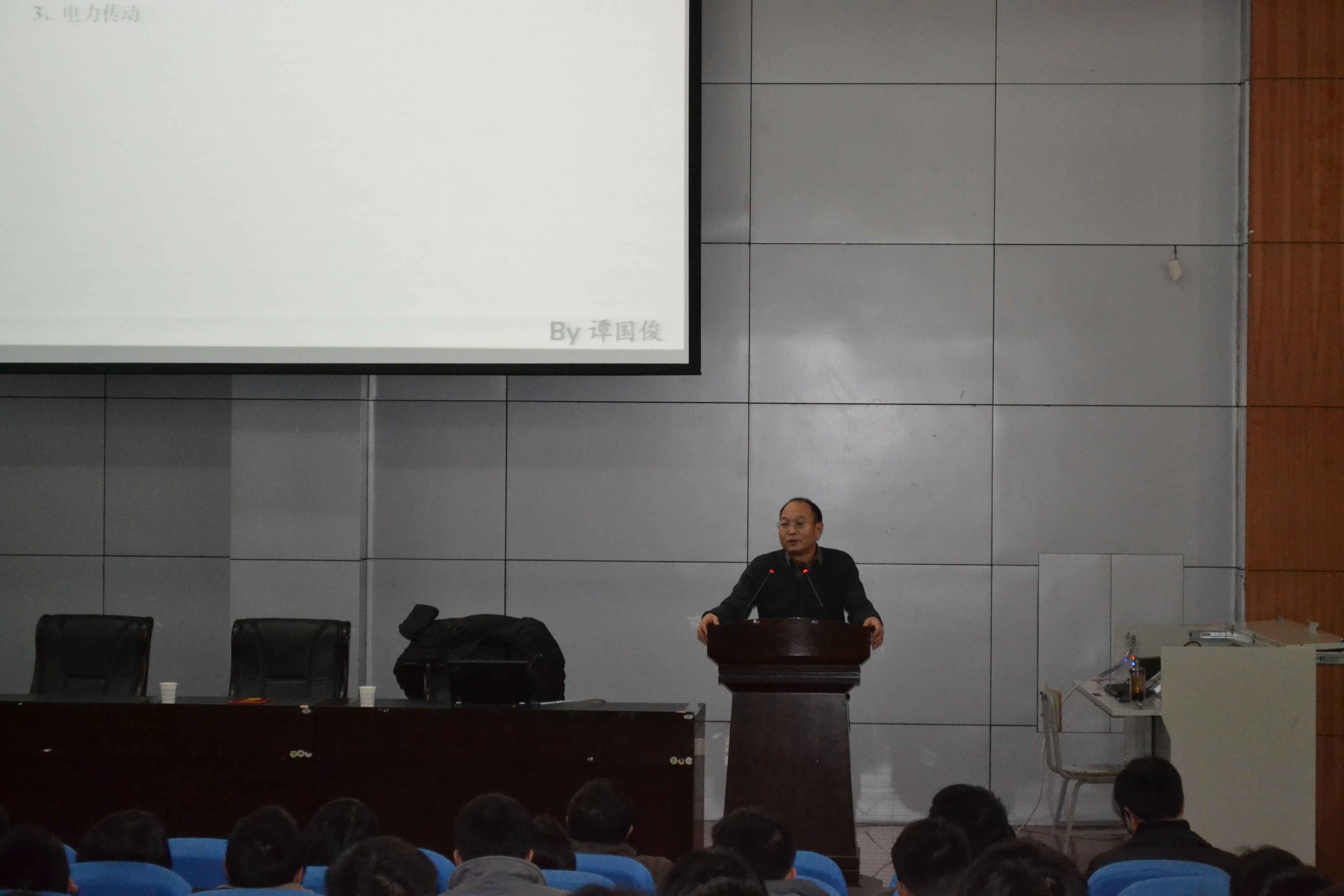 仪式结束后,谭国俊教授以“电力电子与电力传动前沿”为题为电气学院教师和学生做了报告。从电力电子器件开始,结合自己的研究方向,对电机驱动、新能源发电、电动汽车等电力电子技术的应用做了深入浅出的讲述,鼓励老师结合城建特色找准科研创新点。