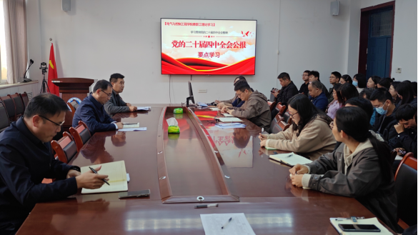(通讯员 丁华斌)为深入学习领会党的二十届四中全会精神,切实把思想和行动统一到党中央决策部署上来,11月4日下午,电气与控制工程学院组织全体教职工召开专题学习会,集中学习党的二十届四中全会精神。电气与控制工程学院党委书记杜留记主持会议并作领学讲话,全体教职工参加学习。