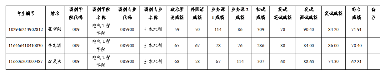 按照我校2026年研究生招生工作安排,我院于4月20日进行了调剂复试,现对调剂考生复试综合成绩进行公示: