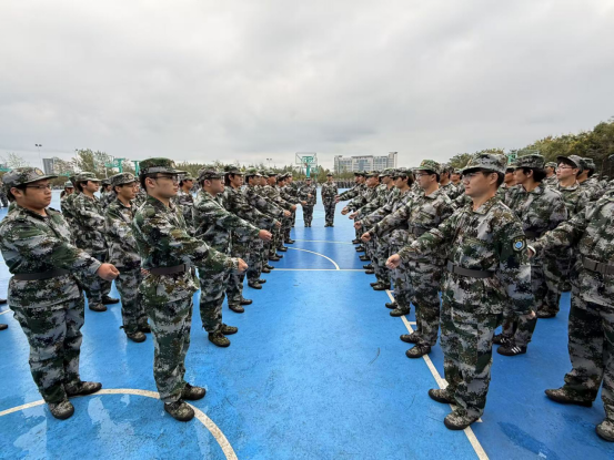 教官们的专业指导,是九连实现快速成长的关键。训练中,教官们始终秉持严谨细致的态度,针对军姿要领逐一纠正学员姿势,从下颌角度到双手摆放位置,力求标准规范;指导队列练习时,通过亲自示范、分解教学,帮助学员掌握动作精髓,用洪亮的口令凝聚团队节奏。同时,教官们也时刻关注学员身体状况,在严格要求之余给予贴心关怀,以言传身教传递着责任与担当。